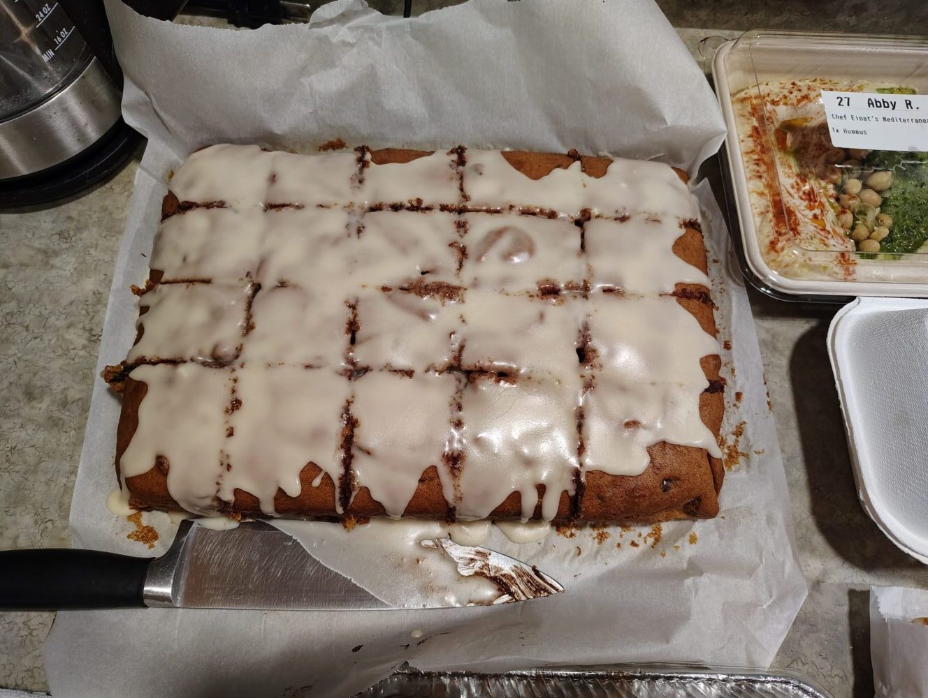 Today we had another themed potluck. This one was “three sisters,” so corn, beans, and squash. Everyone made great stuff and I loved it all! I made polenta and borlotti beans with tomato sauce from The Bean Book using the good mother stallard beans (despite the recipe having “borlotti beans” in the title). I also made the pumpkin olive oil cake from Snacking Cakes. I doubled the recipe and added a whole bag of chocolate chips. No regrets.